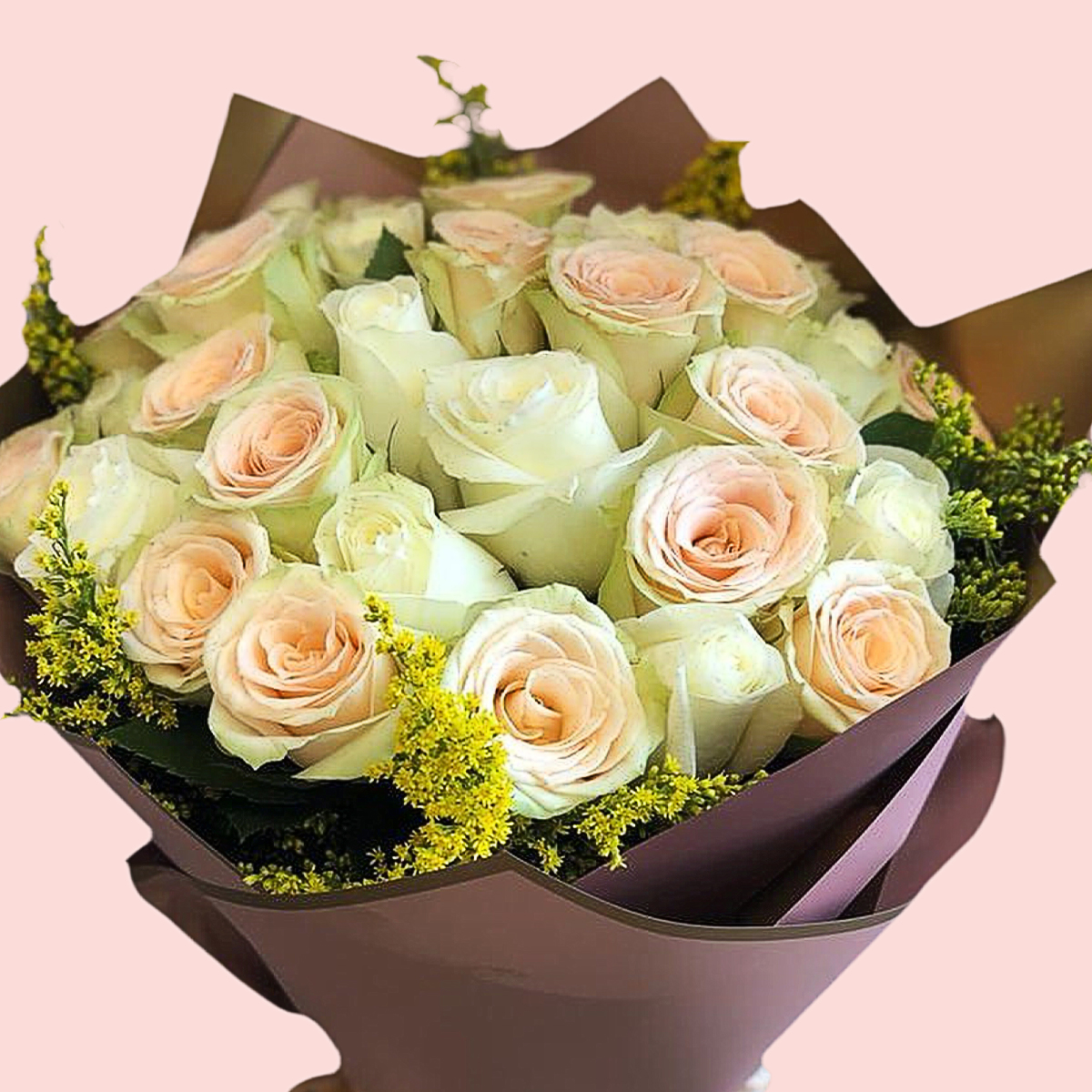 핑크와 화이트의 아름다운 부케는 사랑하는 사람에게 받을 수 있는 가장 귀여운 서프라이즈입니다. 이 부케에는 흰색과 연한 분홍색 장미 25송이가 포함되어 있습니다.