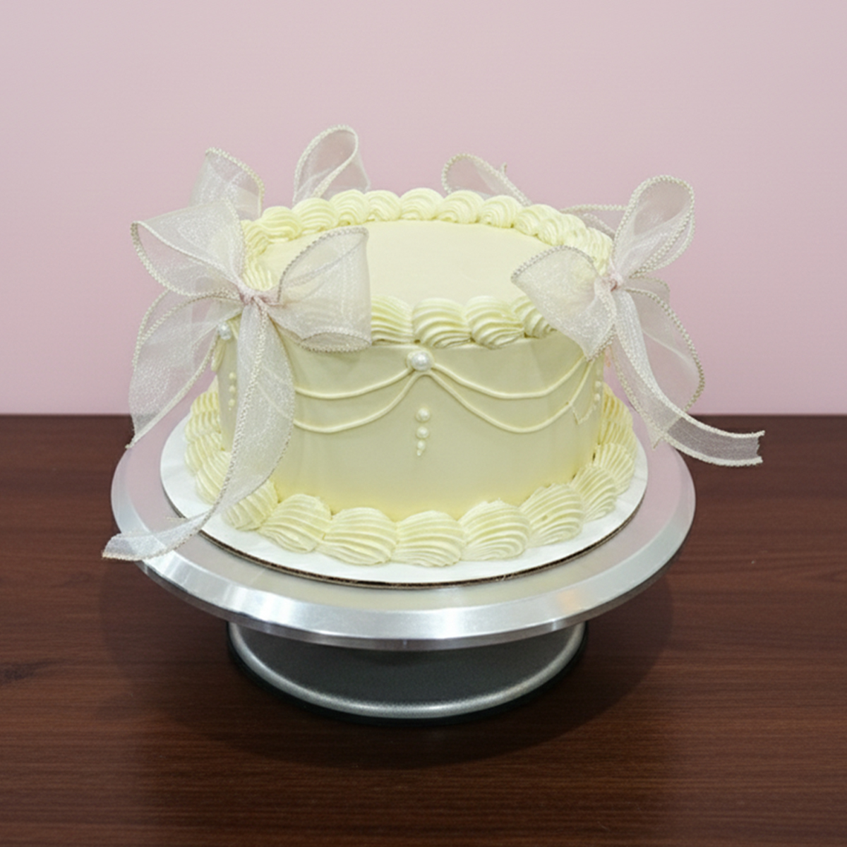 Channel timeless elegance with our Pearl Vintage Cake—an exquisite 2kg centerpiece finished in silky buttercream, scalloped borders, and dainty pearl details. Sheer bows and graceful drapes create a nostalgic, couture look perfect for refined celebrations. Personalize the top with your message for birthdays, anniversaries, bridal showers, or a sophisticated office event. A beautiful pick for wives, moms, grandmothers, best friends, and colleagues who love classic style.